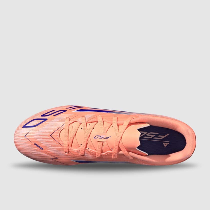 เร่งฝีเท้าทะลุขีดจำกัดไปกับรองเท้าอาดิดาส F50 น้ำหนักเบาที่พัฒนามาเพื่อความว่องไว รองเท้าฟุตบอล Club คู่นี้ช่วยให้คุณรู้สึกสบายขณะเคลื่อนไหวด้วยอัปเปอร์ Fiberskin ที่รองรับเท้าได้ดีพร้อมลิ้นรองเท้าเจาะรู ถัดลงมาเป็นชุดพื้นชั้นล่างอเนกประสงค์ที่ส่งแรงขับเคลื่อนให้คุณเล่นด้วยความเร็วดั่งสายฟ้าบนพื้นสนามหญ้าและพื้นสนามหญ้าเทียม